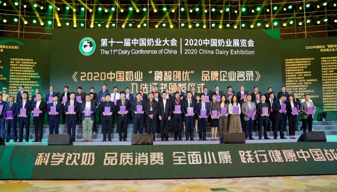 以“科學(xué)飲奶品質(zhì)消費,全面小康,踐行健康中國戰(zhàn)略”為主題的奶業(yè)大會上,中國奶業(yè)協(xié)會副會長兼秘書長劉亞清宣讀了2020中國奶業(yè)“融智創(chuàng)優(yōu)”品牌企業(yè)名錄,碧海公司成功入選,公司執(zhí)行總經(jīng)理王立代表公司上臺接受頒獎。